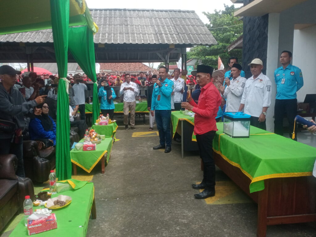 “yang kami hormati tokoh agama tokoh masyarakat para tamu undangan yang memang sengaja diundang oleh panitia 11 untuk menghadiri acara penetapan sekaligus kemudian nomor urut bapak calon kepala desa Wanakerta Kecamatan teluk jambe barat tahun 2025 ini “pungkas Nurdin