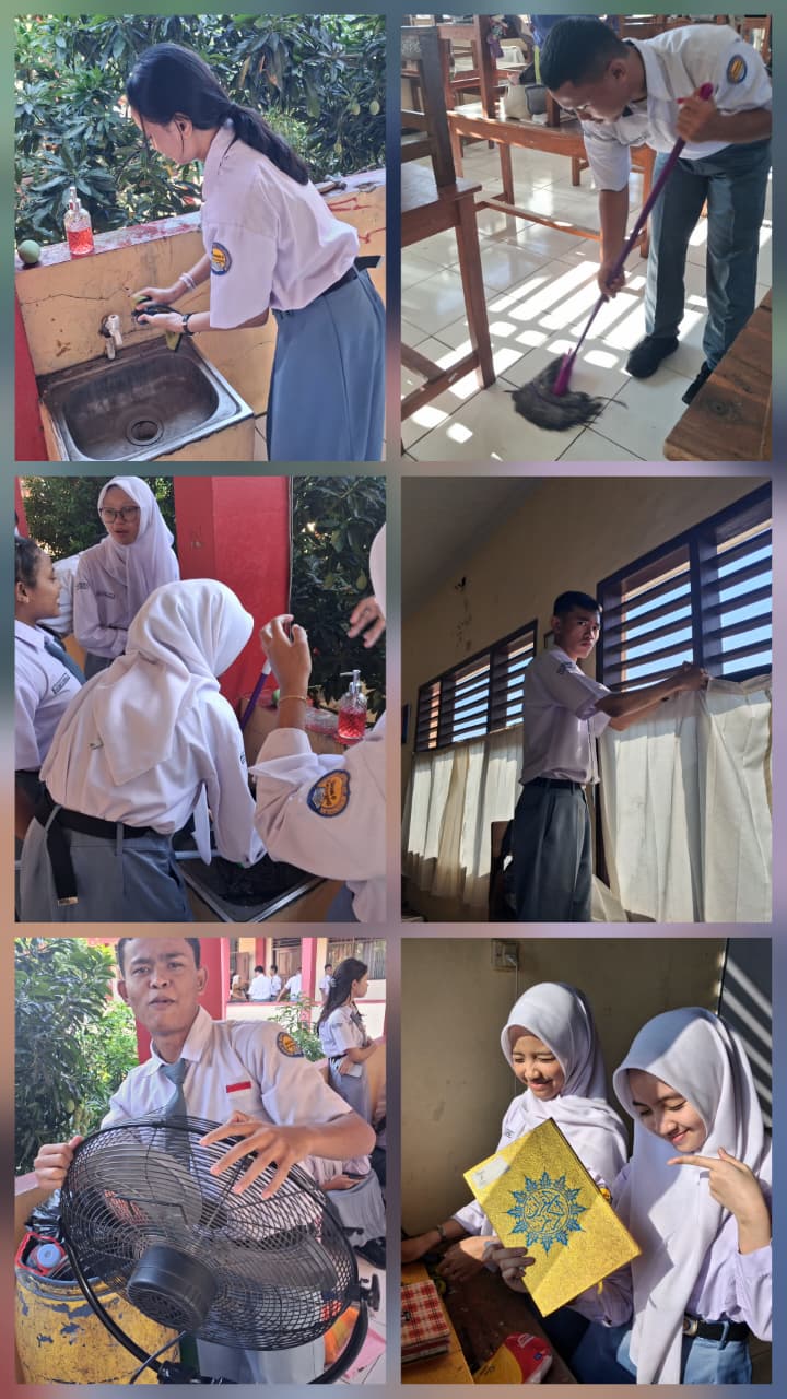 Karawang || Gema.Com – Bersih-bersih sekolah adalah tanggung jawab bersama untuk menciptakan lingkungan belajar yang nyaman, sehat, dan kondusif. Aksi nyata seperti membuang sampah pada tempatnya, Kepala Sekolah Dr.Saepul.Mpd kerja bakti, bersama Tata Usaha, Guru sekolah dan Wali Murid “serta merawat tanaman dapat meningkatkan kedisiplinan dan rasa kepedulian siswa terhadap kebersihan. SMA N 5 Karawang